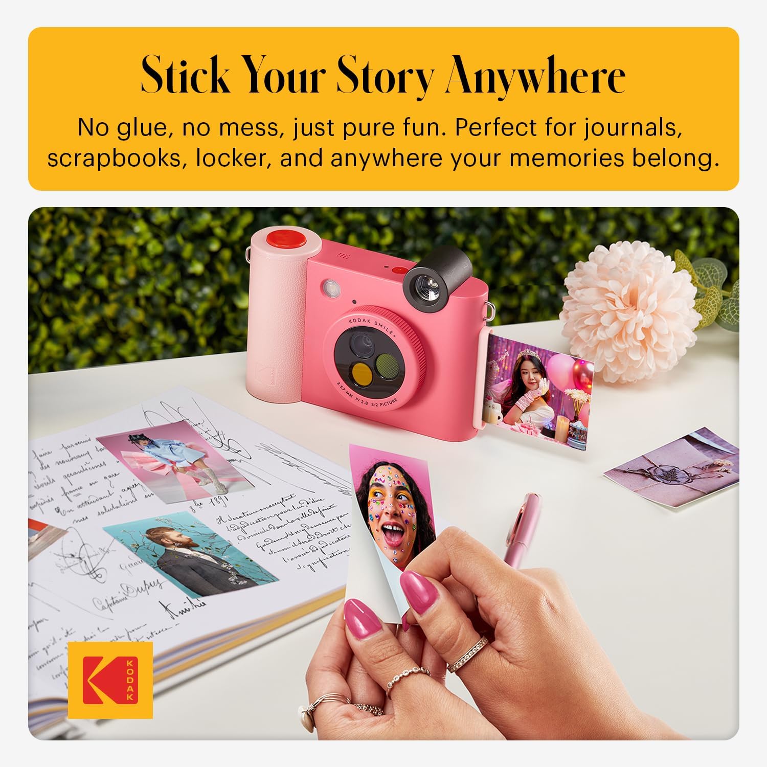 KODAK Smile+ 2-in-1 Digital Instant Print Camera & Wireless Bluetooth Photo Printer -10MP, Special-Effect Rotating Lens, Zink 2×3 Inch Sticky-Back Photos, Print via Fun App from Smart Devices -Fuchsia