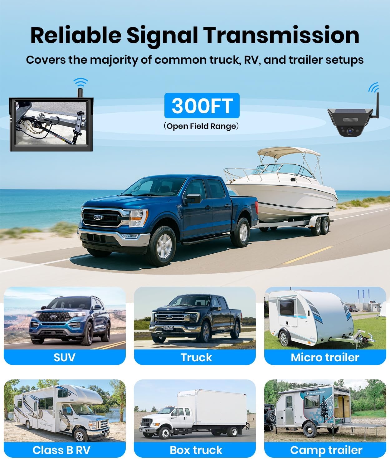 The AUTO-VOX Solar Magnetic Wireless Reversing Camera Kit also boasts an impressive range of up to 115 meters, providing a clear and real-time feed from the camera. The stable and interference-free signal eliminates blind spots and delays, giving drivers a complete view of their surroundings. This feature is especially important for motorhome and trailer owners, who often have limited visibility when reversing.