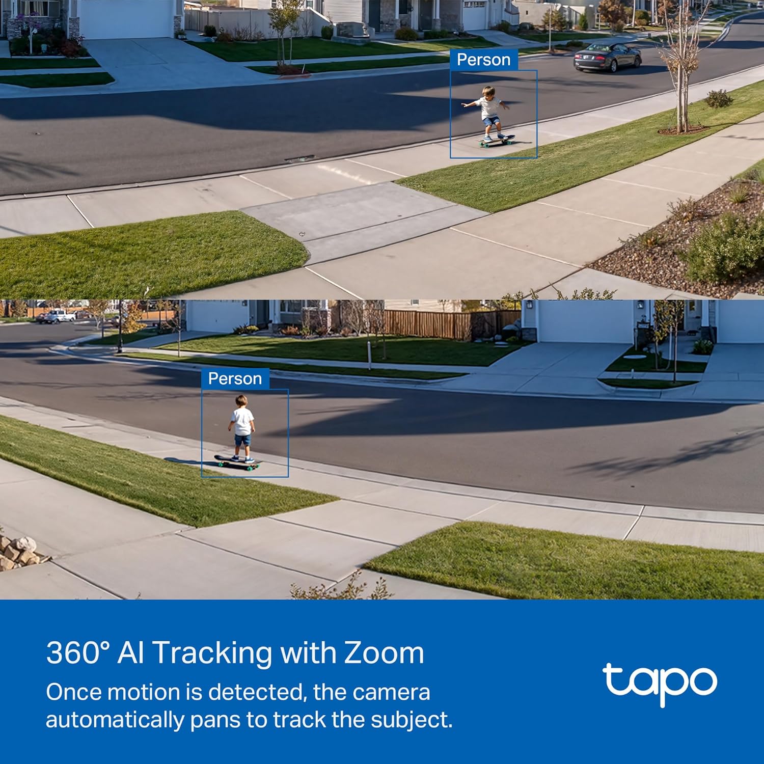 The Tapo C615F KIT features advanced 360º AI tracking, which detects motion within the camera’s field of view and automatically pans and tilts to track the subject. This capability, combined with AI-based filters for people, pets, and vehicles, reduces false alerts and provides more accurate motion detection. The camera can detect motion up to 32 feet away at its highest sensitivity, ensuring that potential threats are not missed.