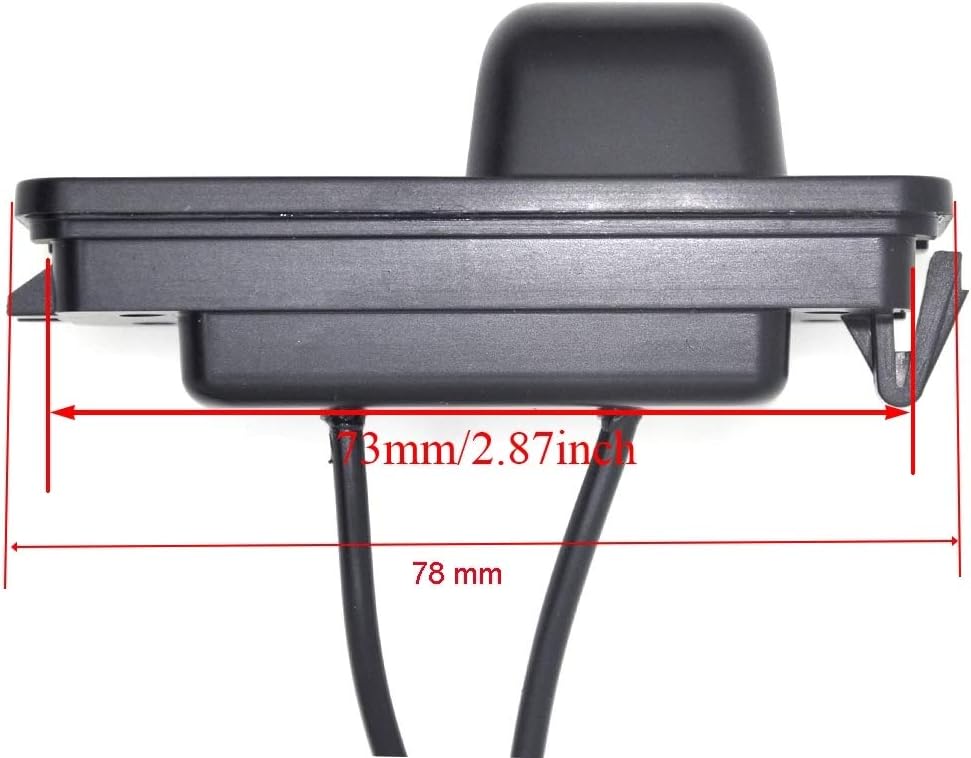 The camera is specifically designed for various Volkswagen models, including the Golf, CC, Passat, Polo, Scirocco, Eos, Lupo, Phaeton, Beetle, and Seat Variant. It is essential to confirm the camera’s size compatibility with your vehicle before placing an order, as different year models may have varying camera sizes.